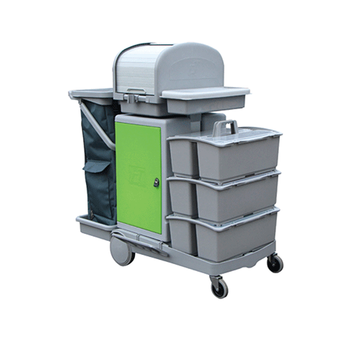清潔手推車配平拖系統(tǒng)(帶滾塑料大箱和卷簾頂蓋) 型號JT RC153